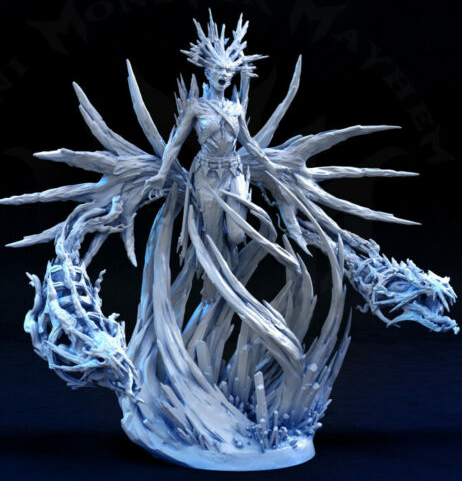 That's when he sees it. Something coming, something huge and shaped enough like a person that he can comprehend it vaguely as that. But it's more like an ice sculpture brought to life, icy blue and surrounded by dangerously sharp curves of ice as it makes its way towards him. Its eyes glow blood red.