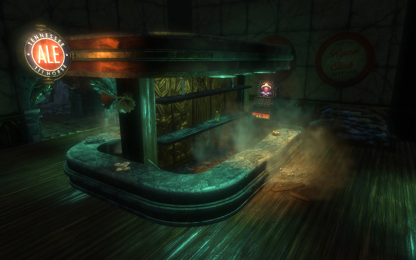 Peter visibly balks. He never actually encountered the "Little Sisters" that others spoke about bumping into... but he'd heard plenty of stories about them. About the slugs within them β and Peter had, unfortunately, also been host to one such slug..... The removal was surgical and done by someone who was most definitely not a licensed doctor; it wasn't his favourite experience....! In any case, he's not entirely sure what to expect with this, and not entirely sure that's what it may actually be. (Peter does tend to Hear Things, after all.... Perhaps there's nothing in those shadows but his own ghosts.) He turns to his friend, leaning in close, voice kept to a whisper. )